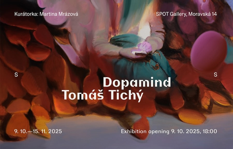 Jedním ze symptomů dnešní přestimulované společnosti se stal tzv. „levný dopamin“ – okamžitá odměna, která přináší krátkodobé uspokojení a na které vzniká závislost. Levný dopamin v současnosti poskytují mimo jiné sociální sítě a technologie. Informace se vrství a pohlcují nás podobně jako malby Tomáše Tichého, v nichž se fragmenty reality prolínají s abstraktními formami. Výsledkem jsou díla, která rozostřují hranici mezi skutečností a její digitální podobou.