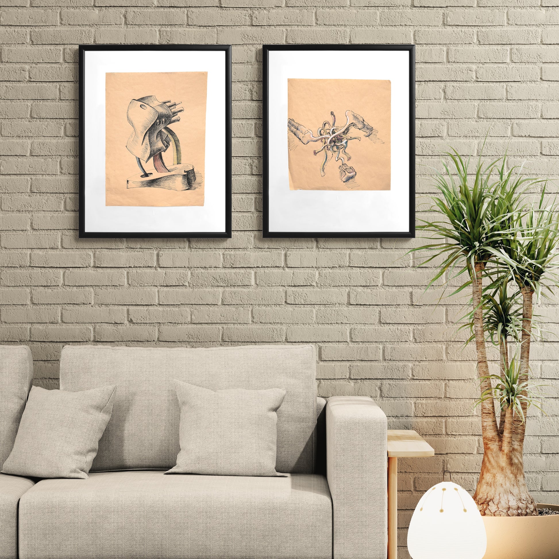 Dvojice kreseb vybraných pro platformu 100ks pochází z 90. let, ale ukazuje principy Černého tvorby platné dodnes. Obě kresby evokují přípravné skici k monumentálním prostorovým realizacím, ať už fiktivním nebo reálně uskutečnitelným - mezi čímž je v pojetí Černého často jen tenká hranice. Nechybí antropomorfní prvky. Konstrukce z Bez názvu I. jako by shlížela dolů a pohupovala se na svých (železobetonových?) nožkách. Pokud bychom sem dodali perspektivu člověka, nejspíš by nedosáhl ani k vrcholu podstavce.