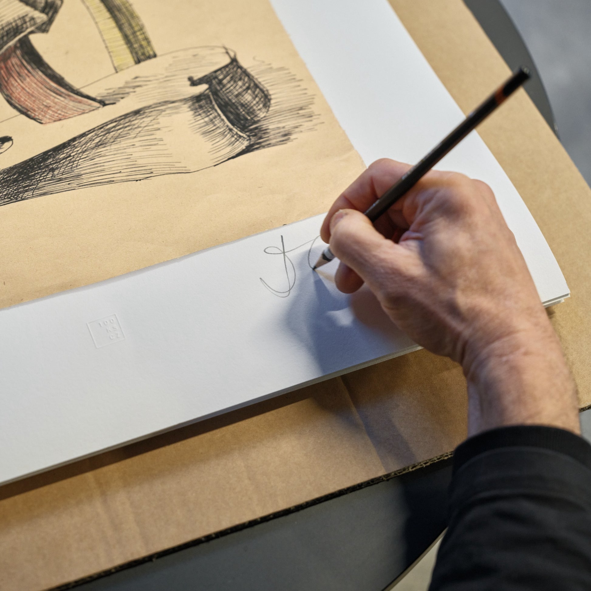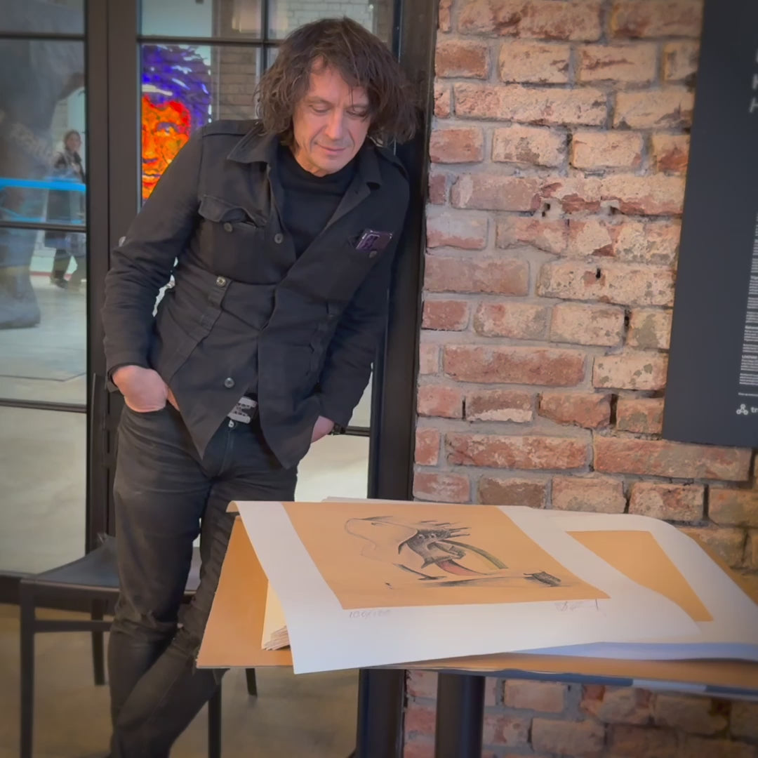 David Černý, nejviditelnější český umělec ve veřejném prostoru a jeho raná kresba balancující mezi fikcí a realizovatelnou konstrukcí. Limitovaná edice 100ks, číslováno, podepsáno autorem.