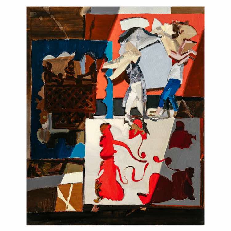 Obraz vznikl surrealistickou asociativní metodou, autor vedle sebe skládal různé části z různých modelů, které použil k jiným obrazům. Vzniklo tak úplně nové dílo s novými konotacemi, které umožňují svobodnou interpretaci. Pro nás se jedná o perfektní příklad jeho originální hry s prostorem, světlem, představivostí a formou.