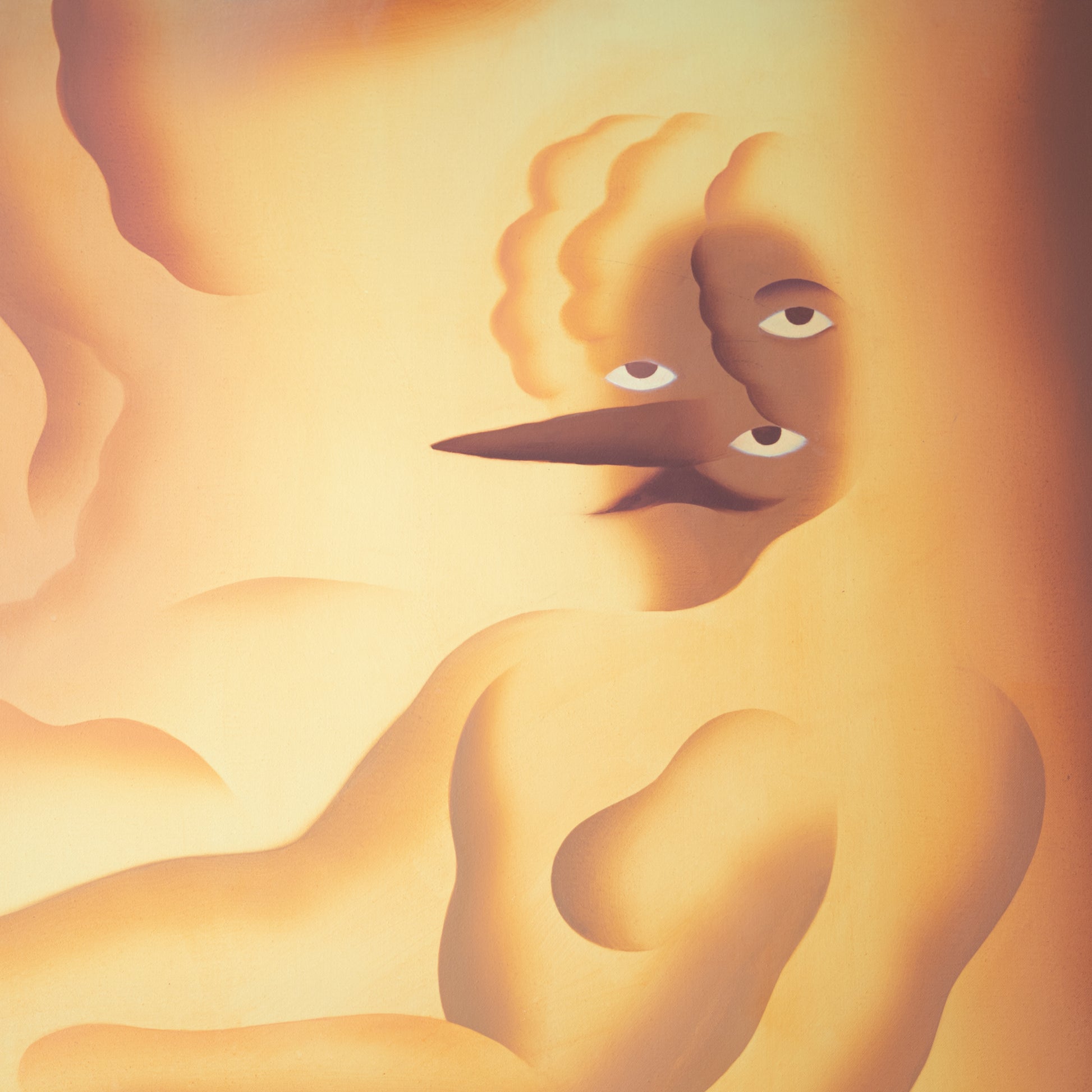 Obraz výrazného českého malíře je vystavěn na graficky strukturované kompozici a soustředěné práci s linií. Prolínání kresby, spreje a šablony vytváří napětí mezi přesně definovanými tvary a měkčími, volně se rozpíjejícími plochami. Výsledná scéna působí jako vizuální putování krajinou na hraně reality a vnitřních světů, v níž se vynořují archetypální obrazy hluboko uložené pod hladinou osobní paměti.