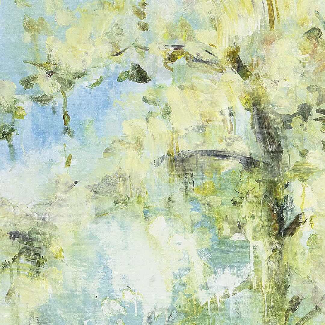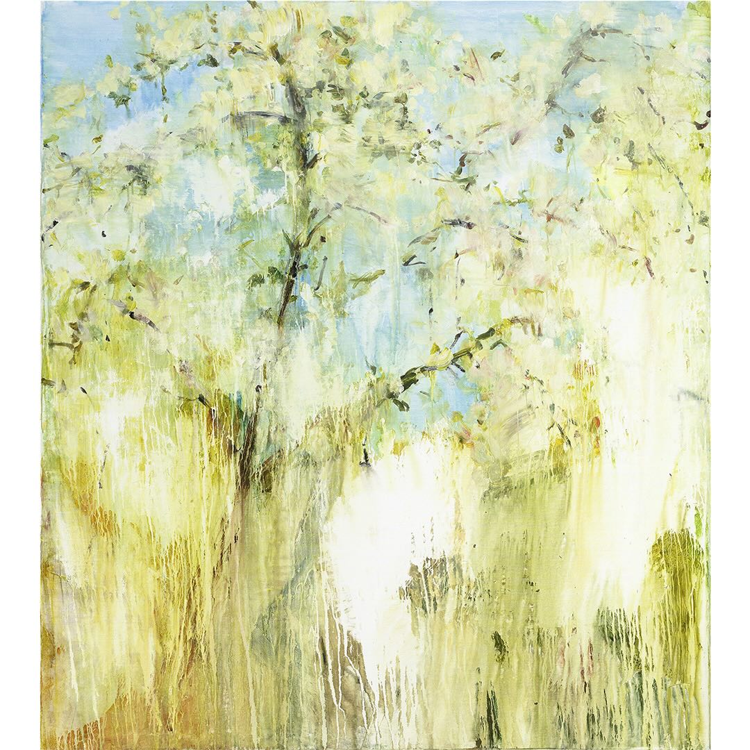„Obraz Jabloň jsem maloval u nás na zahradě v plenéru letošního května. Je to motiv, ke kterému se vracím opakovaně - rozkvetlá jabloň v tom krátkém, asi čtrnáctidenním období, kdy září bílými květy. Tentokrát zachycená večer, když květy zlátnou.“ - Matěj Lipavský