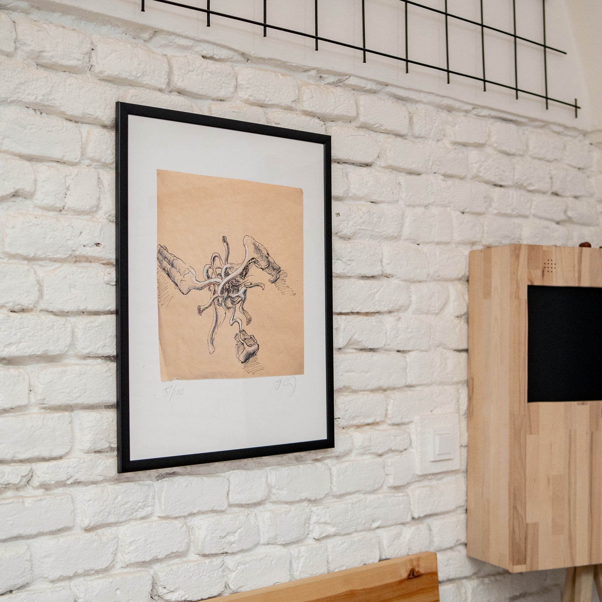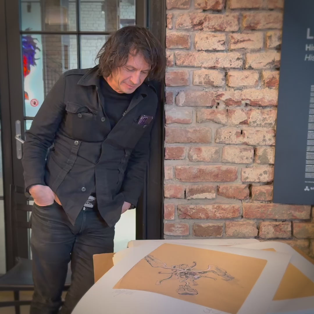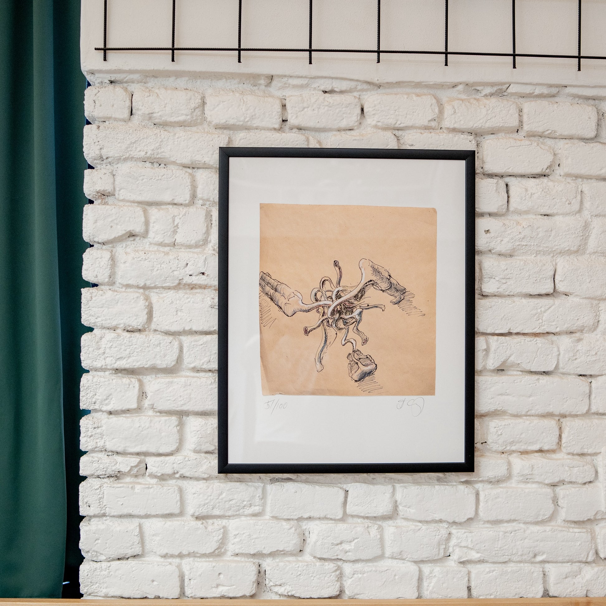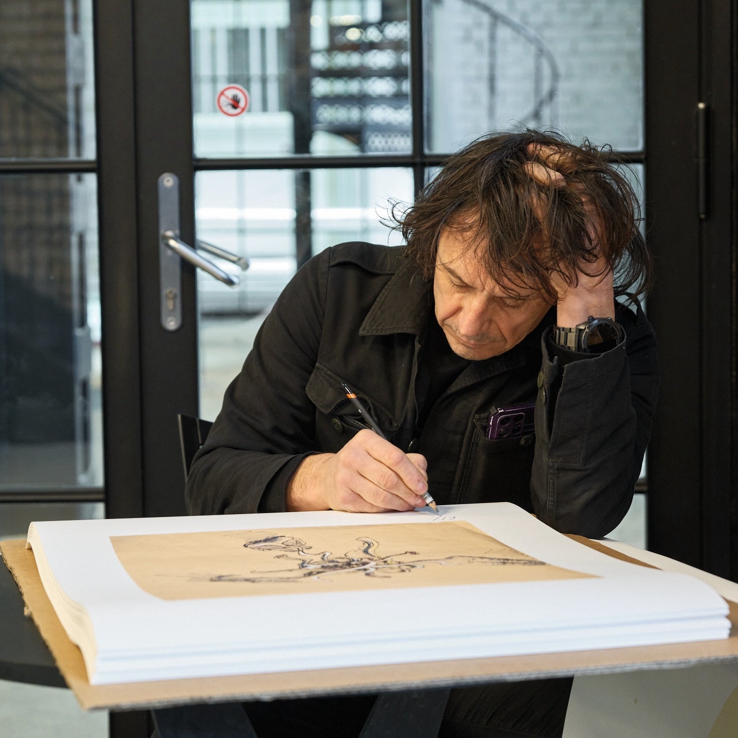David Černý, ikona českého súčasného umenia, a kresba z 90. rokov, ktorá predznamenáva jeho fascináciu pohybom a mechanikou známou z neskorších sôch. Limitovaná edícia 100ks , číslované, podpísané autorom.