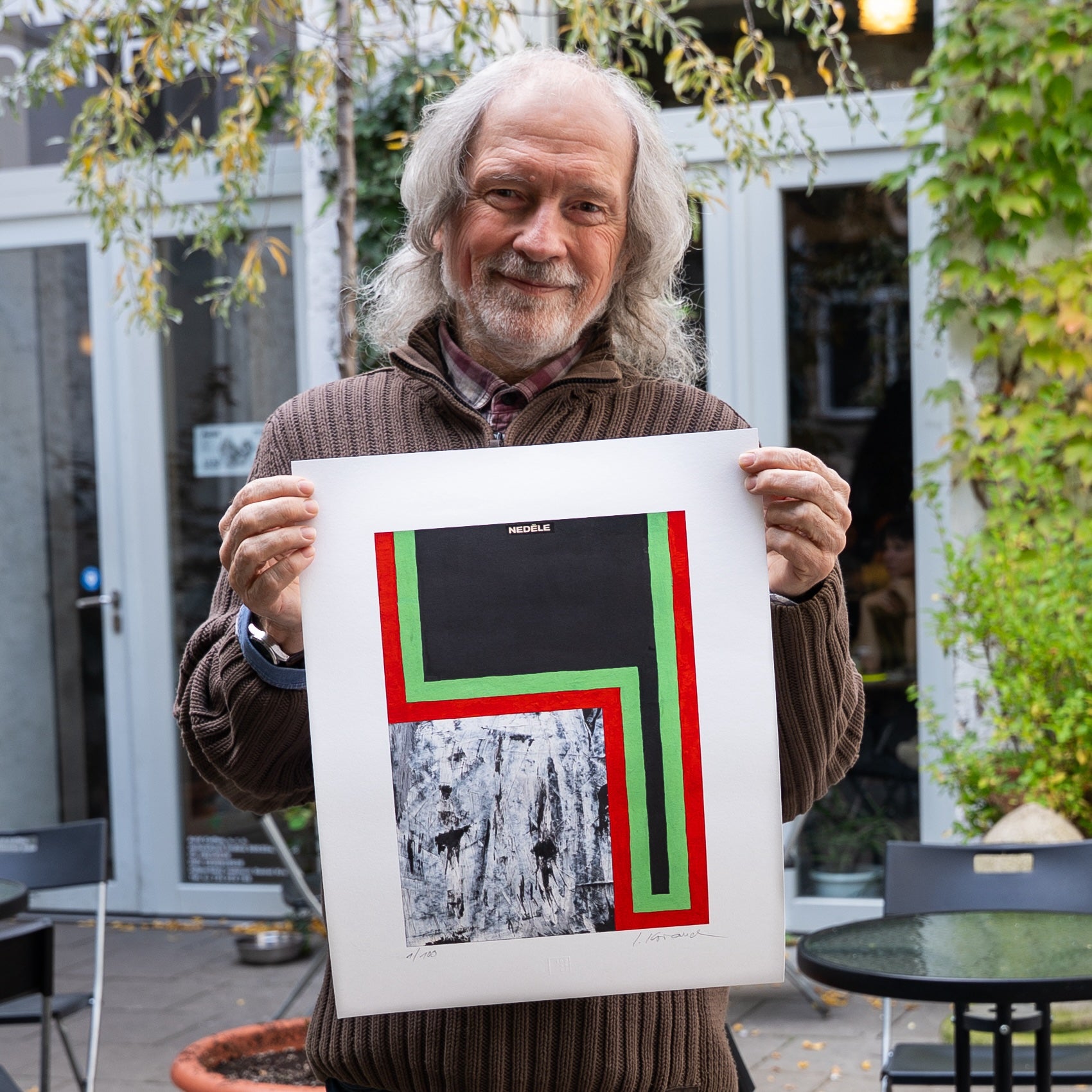 Ikona českého konceptuálneho umenia a autor zastúpený v Tate Modern aj MoMA a koláž z 80. rokov, kde sa stretáva geometria, gesto a koncept. Limitovaná edícia 100ks , číslované, podpísané autorom.