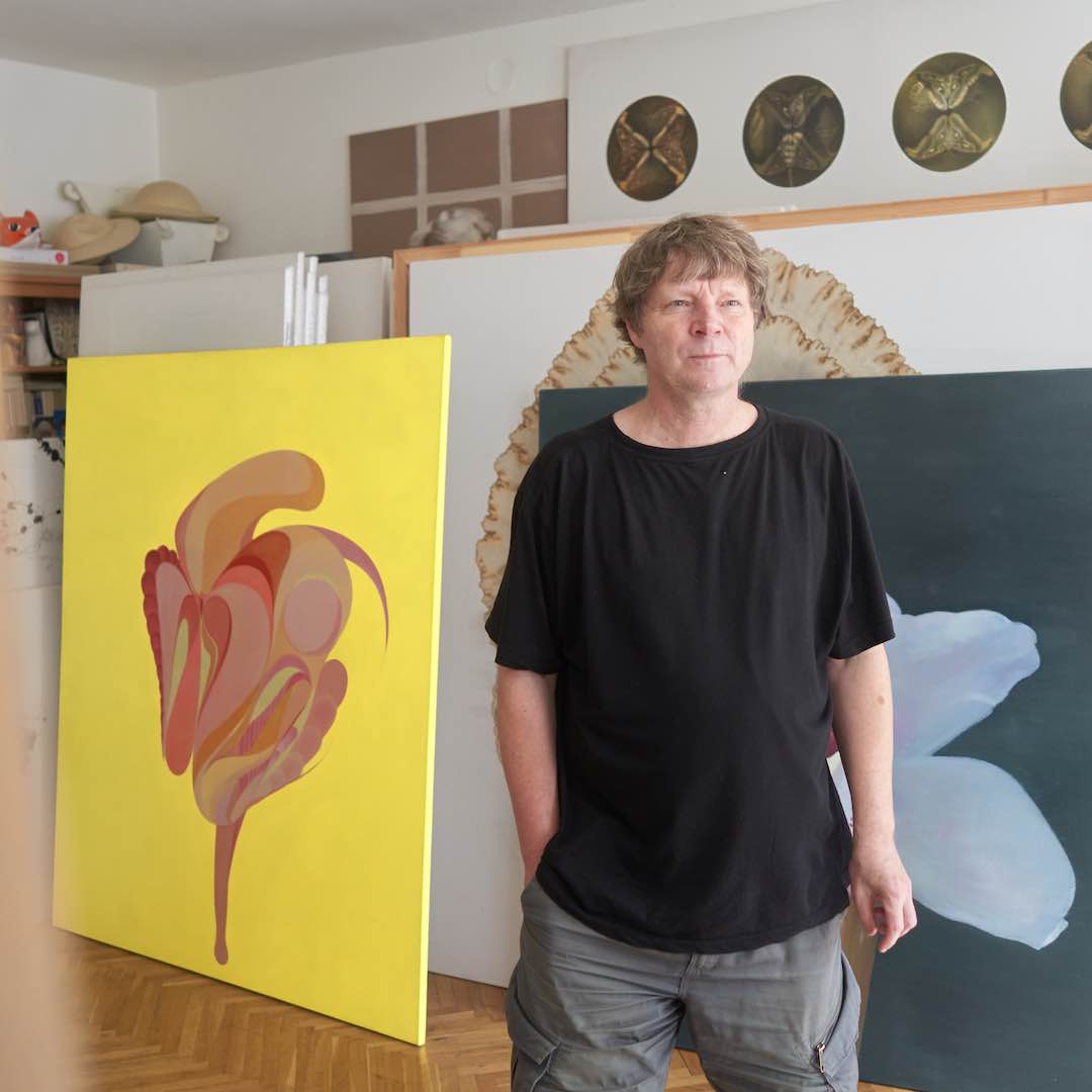 Pri tomto obraze, ktorý považujem za rastlinu, ale môže to byť vlastne čokoľvek, čo si človek predstaví. Má to stvol, ale keby ho nemalo, dá sa s tým hrať, treba to otočiť hore nohami. Tá kvetina je fantasijná, nechal som ju vyrásť postupne - z intuície. Tzn. začal som nejakým bodom, ten sa začal navíjať a navíjať, až som to v jednej chvíli zastavil. Nevedel som teda od začiatku, ako bude vyzerať. Nechávam to rásť v čase na mieste.