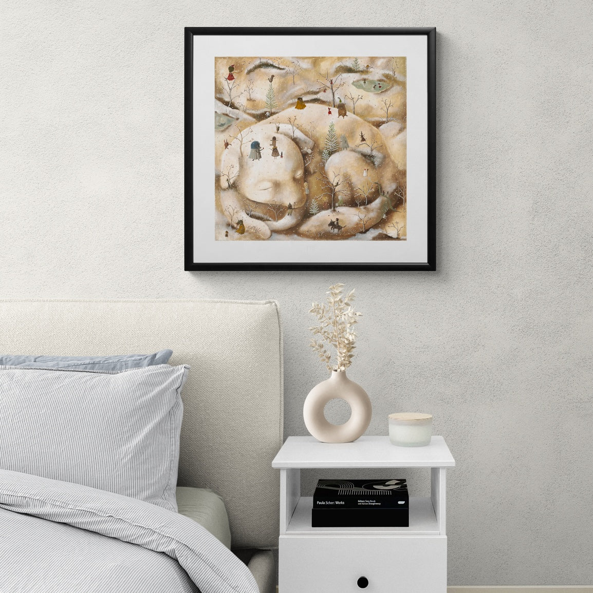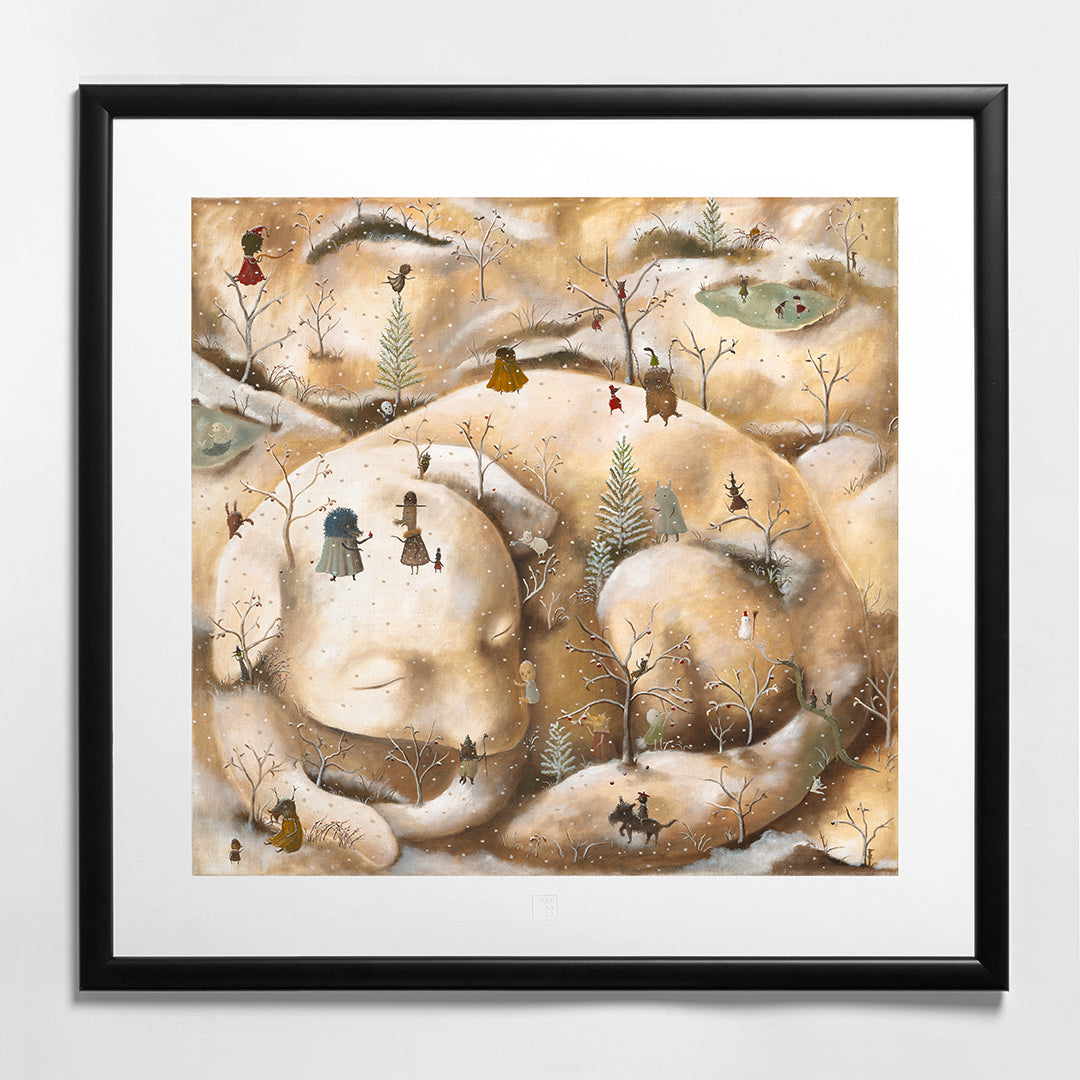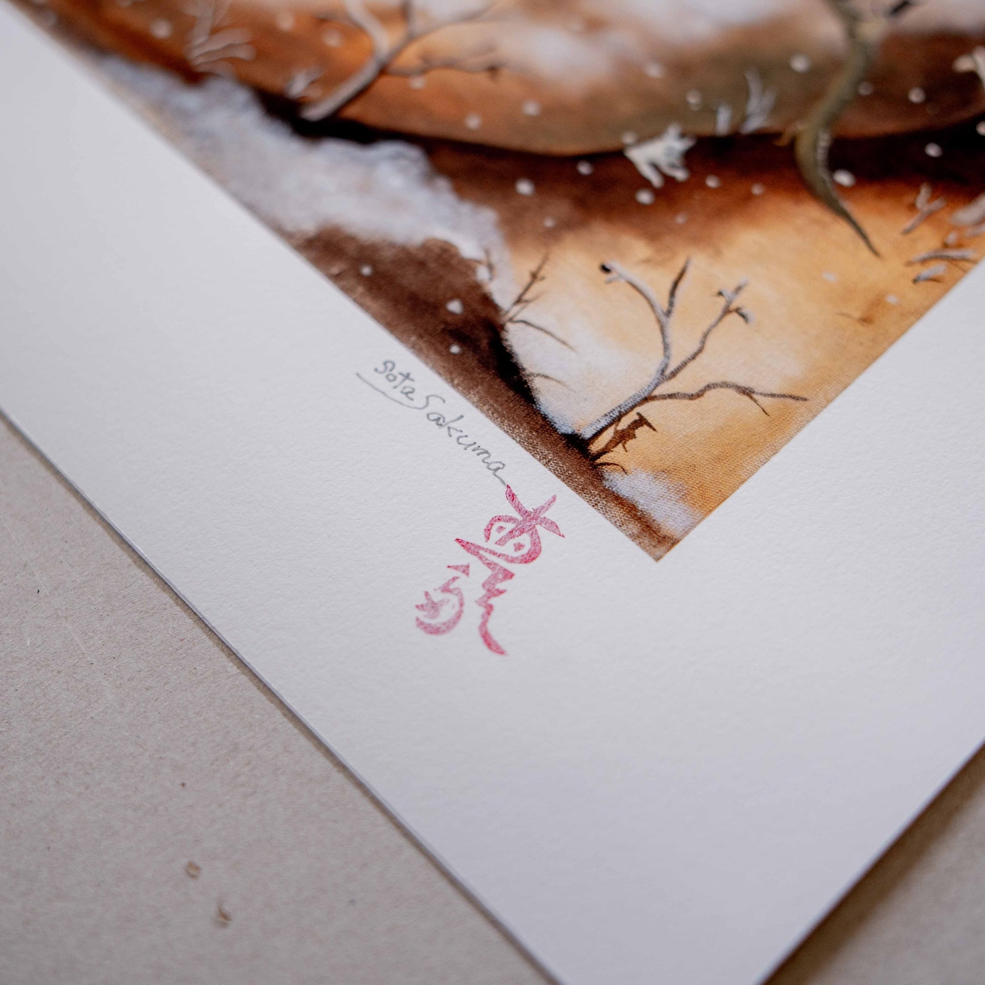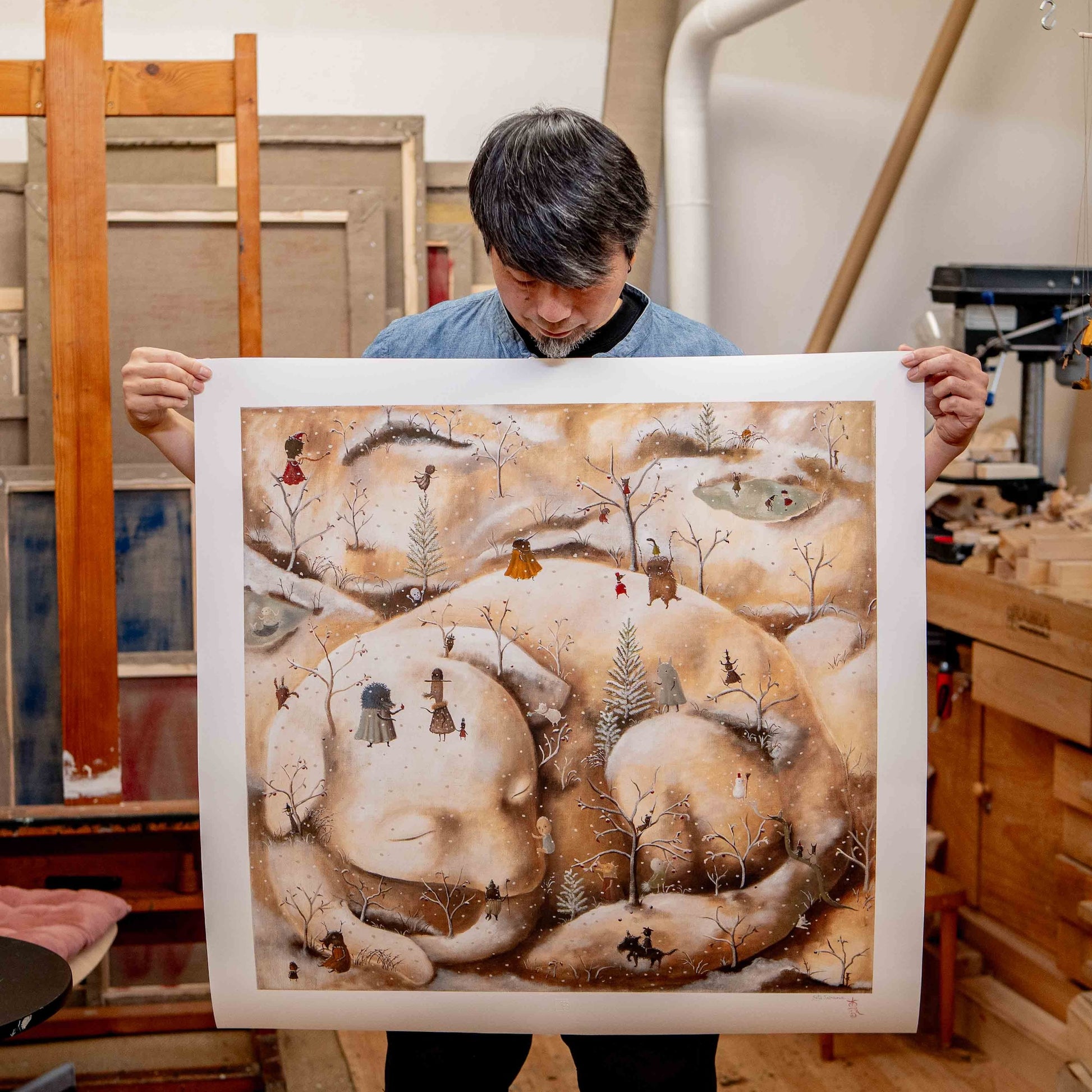 Pre 100ks sme od Soty Sakumy vybrali dielo nazvané Veľký spáč. Inšpiráciou pre tento nekonečne jemný obraz bol pohľad na zasneženú krajinu, ktorá by sa mohla nachádzať ako v Japonsku, tak aj v Česku. Sakuma si zachoval detskú schopnosť vnímať, ako sa prírodné útvary pri troche fantázie formujú do tvarov pripomínajúcich zvieracie alebo ľudské rysy. Namiesto zasnežených kopcov tu máme spiaceho psa, na ktorého chrbte sa odohrávajú ďalšie vrstvy príbehu - roztodivné bytôstky tu korčuľujú po ľade, tancujú v špičkách stromov, guľujú sa a plnými dúškami hltajú ten zimný čas, ktorý len zdanlivo a na prvý pohľad môže vyzerať, že príroda.