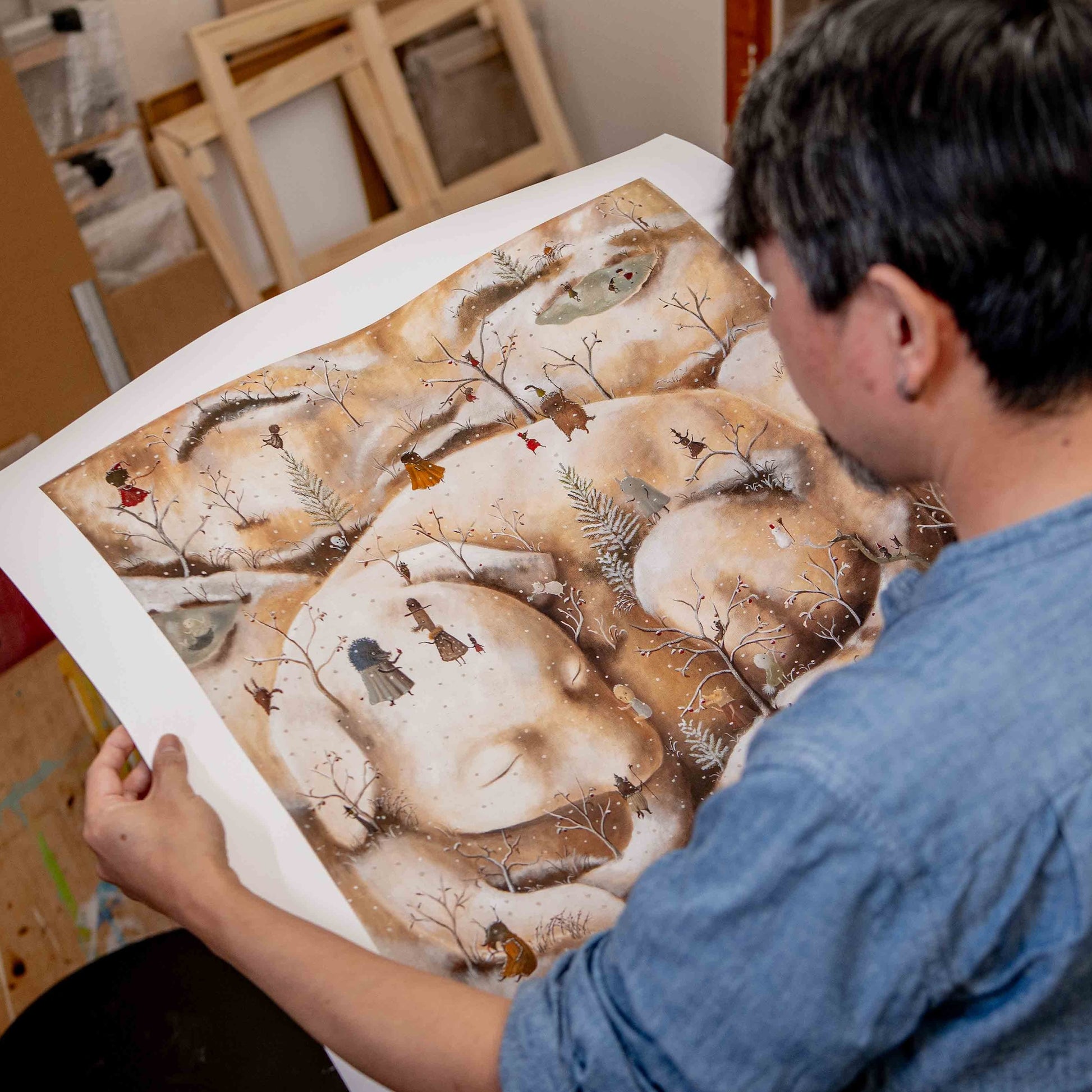 Nekonečne jemný obraz plný roztodivných detailov od japonského maliara, ktorý v Prahe našiel domov aj nekonečnú inšpiráciu v českej bábkarskej tradícii. Limitovaná edícia 100ks , číslované, podpísané autorom.