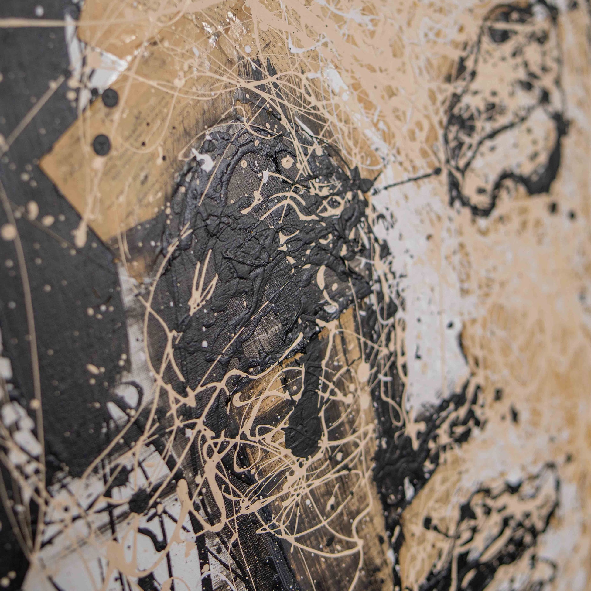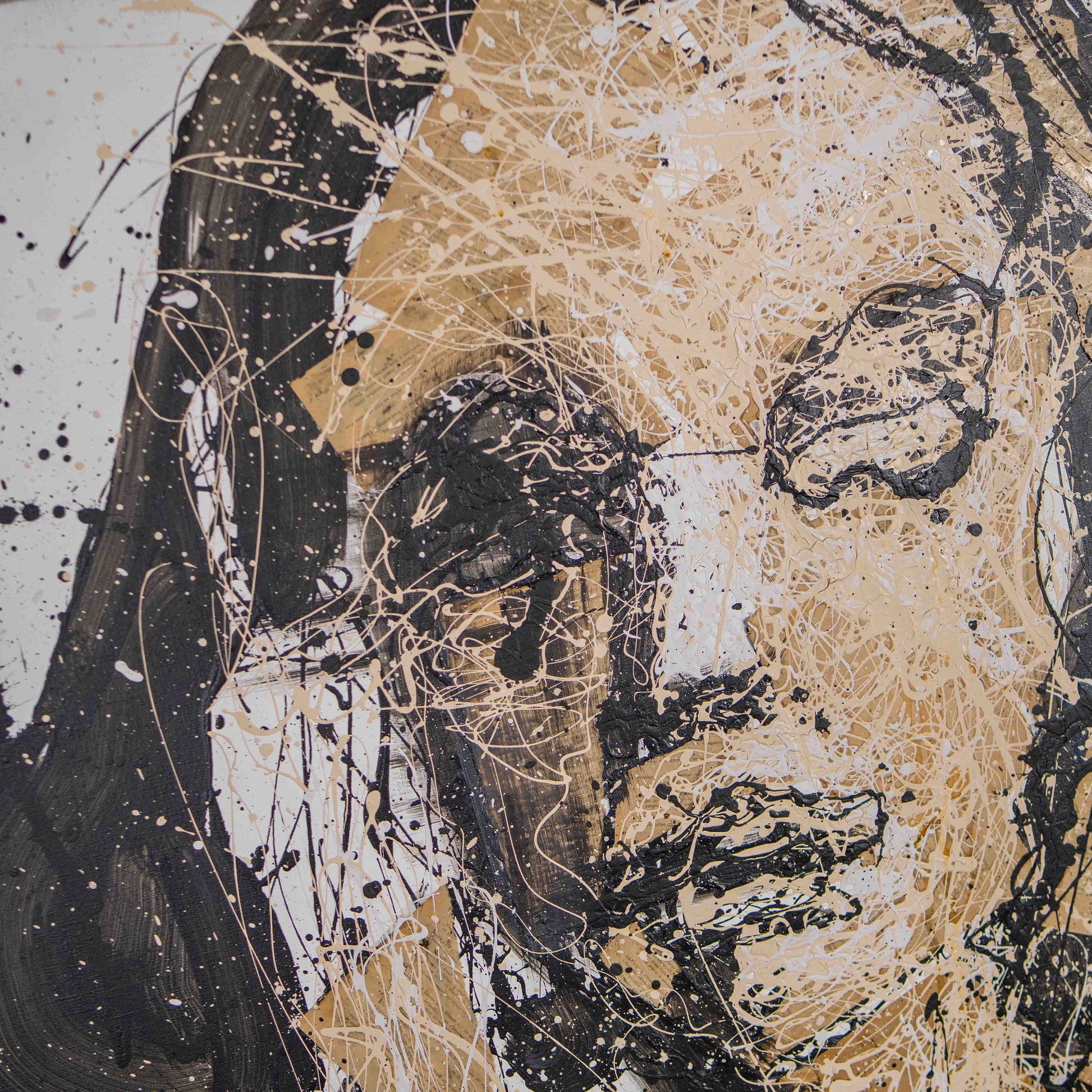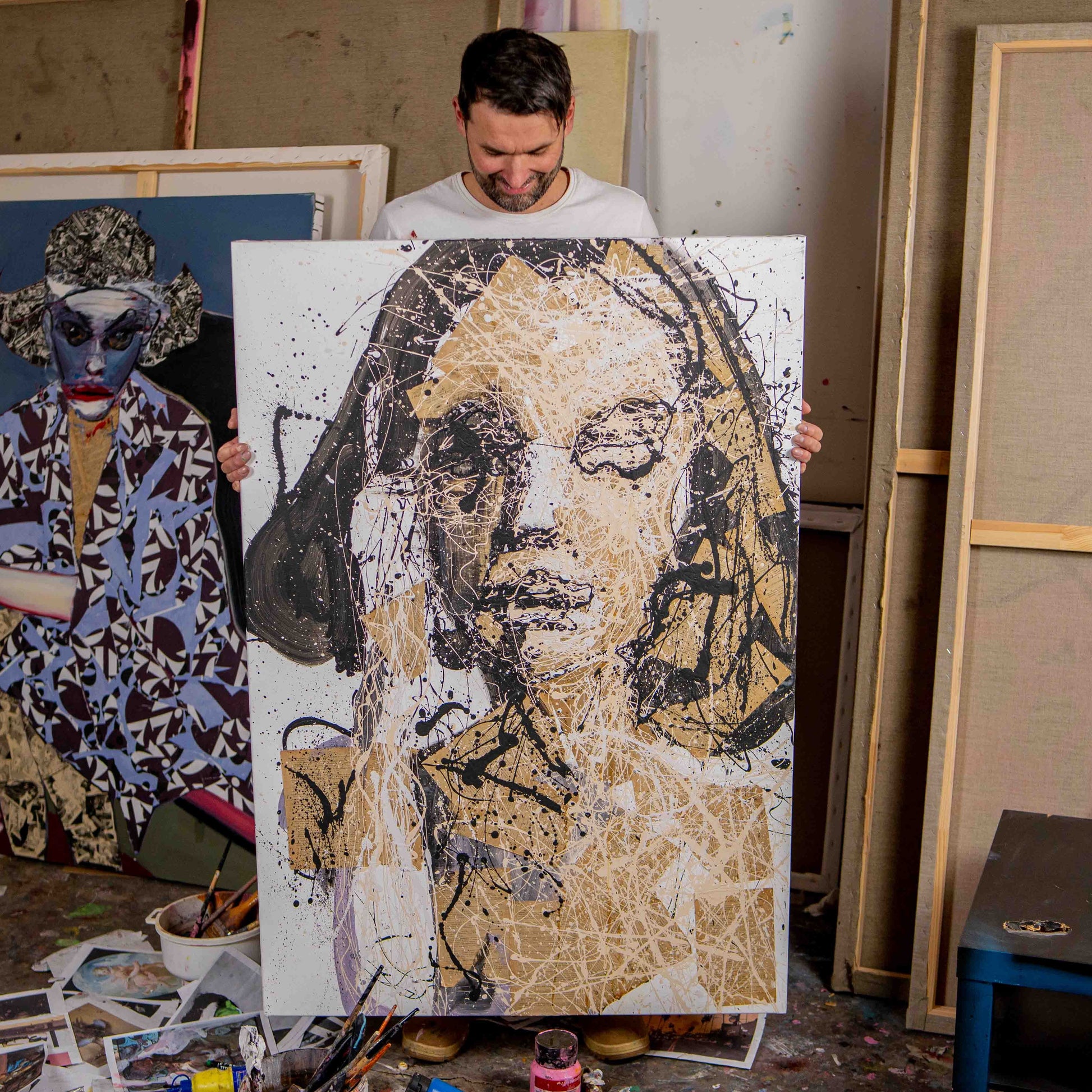 Tomáš Jetela používá techniku drippingu k tomu, aby z chaotických vrstev barev nechal vystoupit křehký, tajemný portrét. Výraz a gesto postavy zůstávají otevřené interpretaci, díky čemuž má obraz silnou atmosféru a osobní nádech.