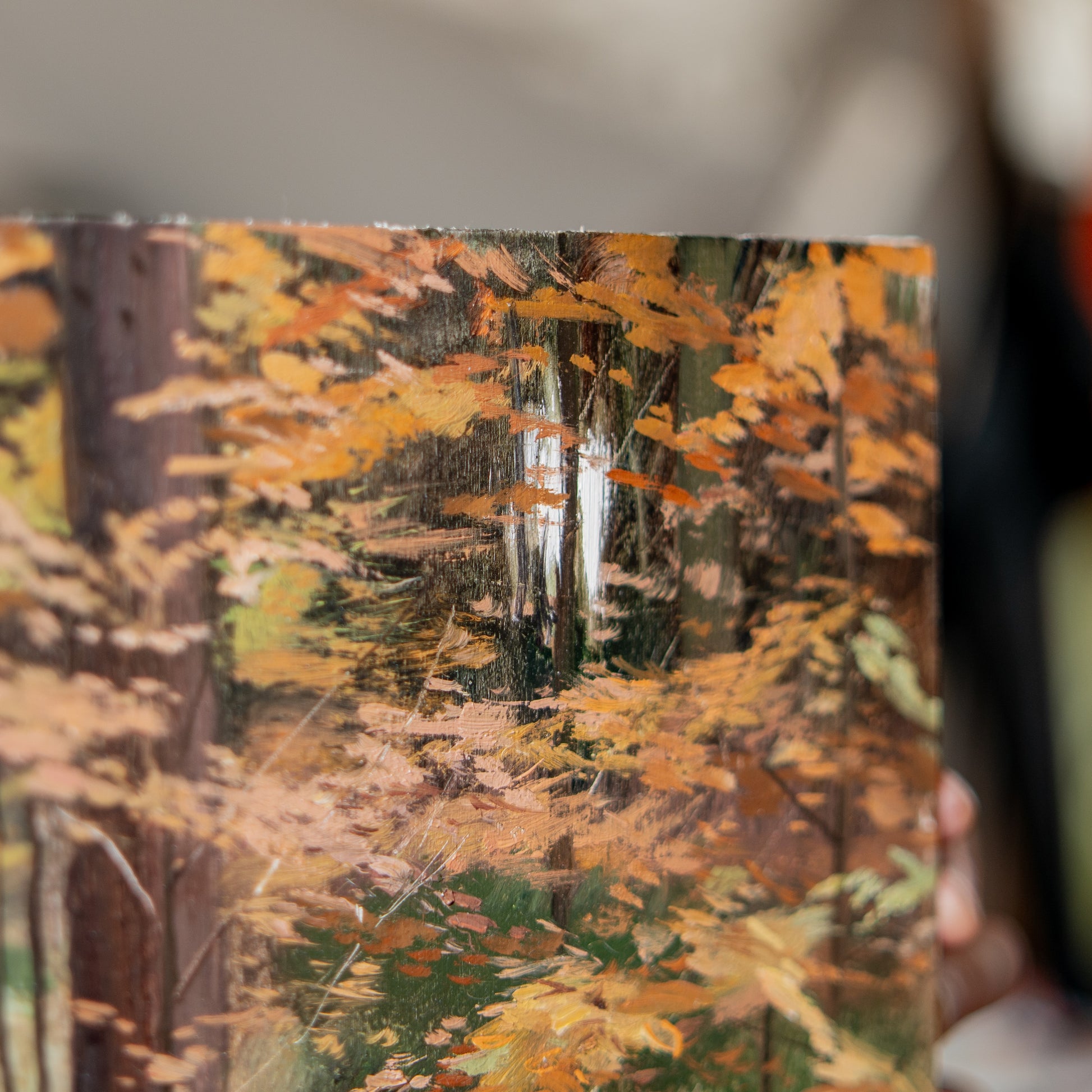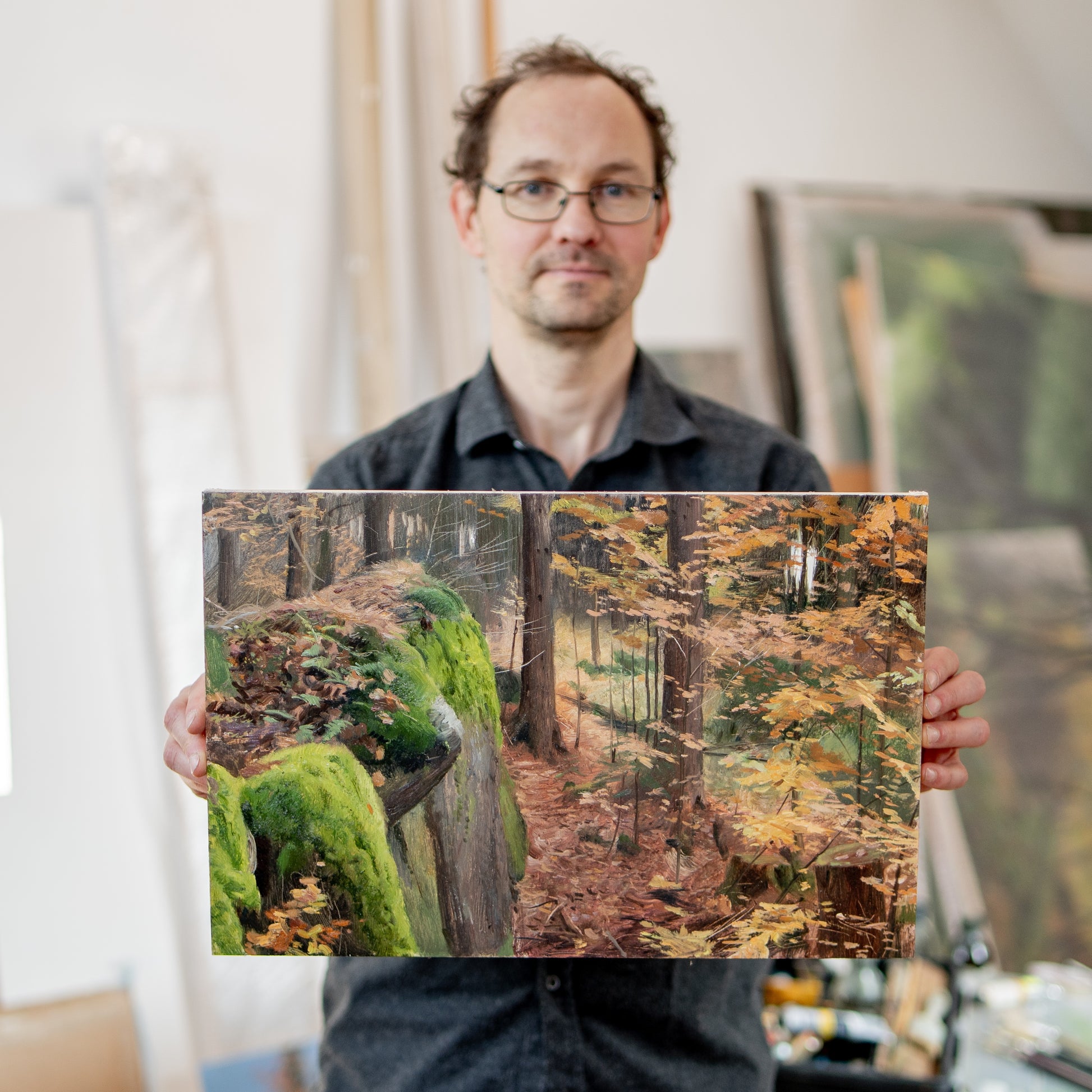 Zdeněk Daněk ve svých krajinách pracuje s jemnou citlivostí k barvě, světlu i atmosféře místa. Tahle malba z podzimních Jizerských hor je poctou čisté radosti z barev a klidné energie, kterou dokáže příroda nabídnout.