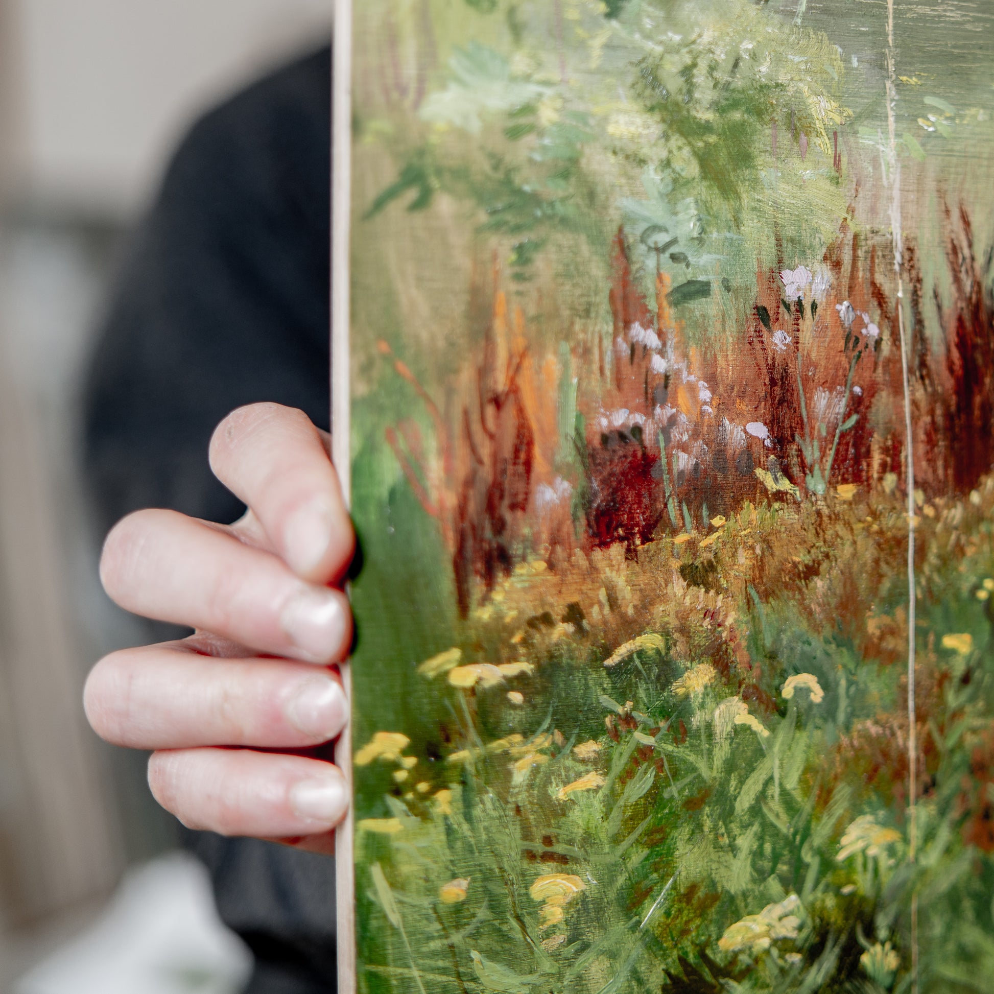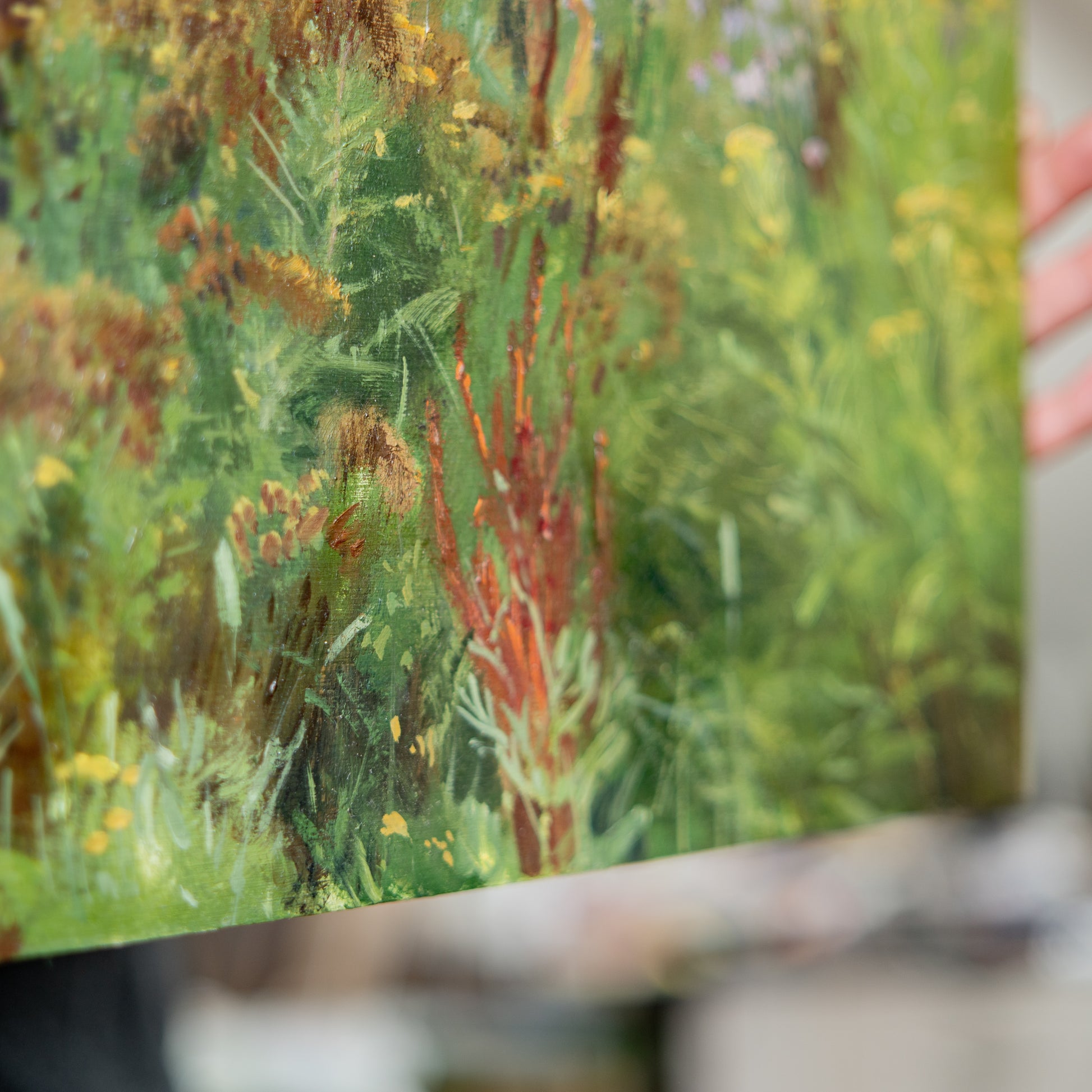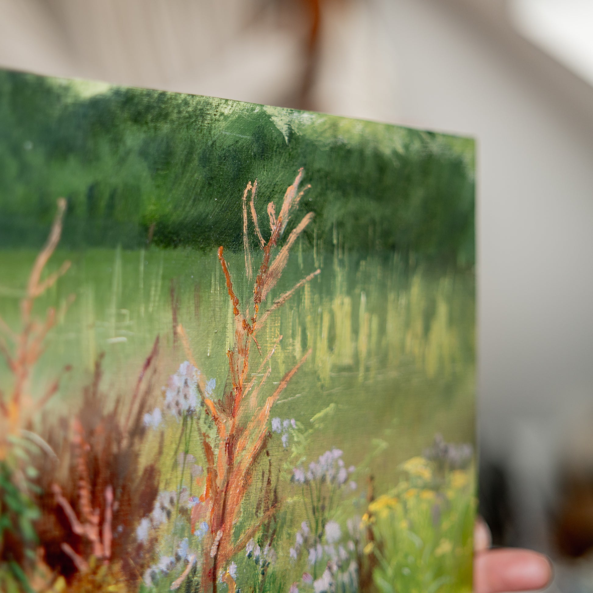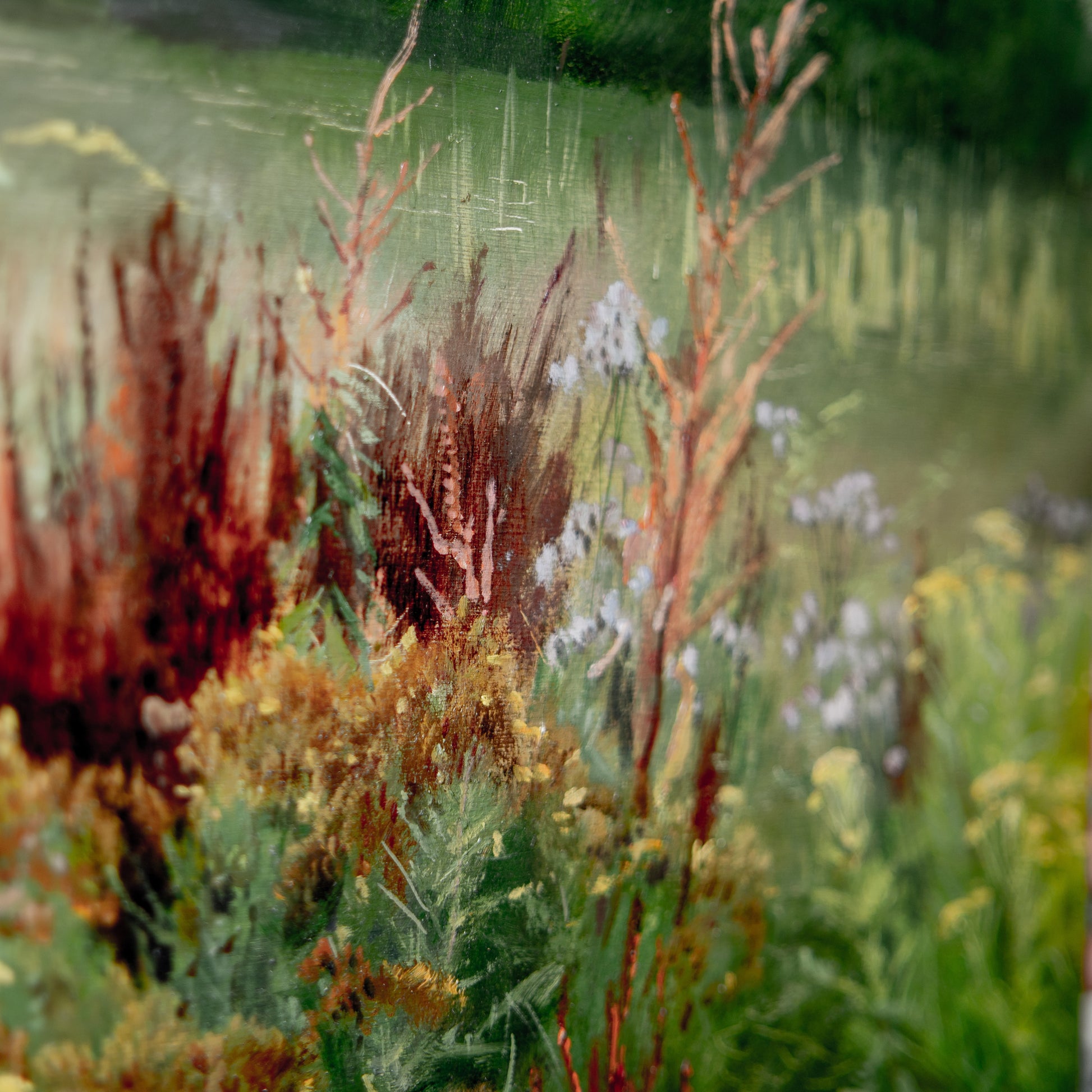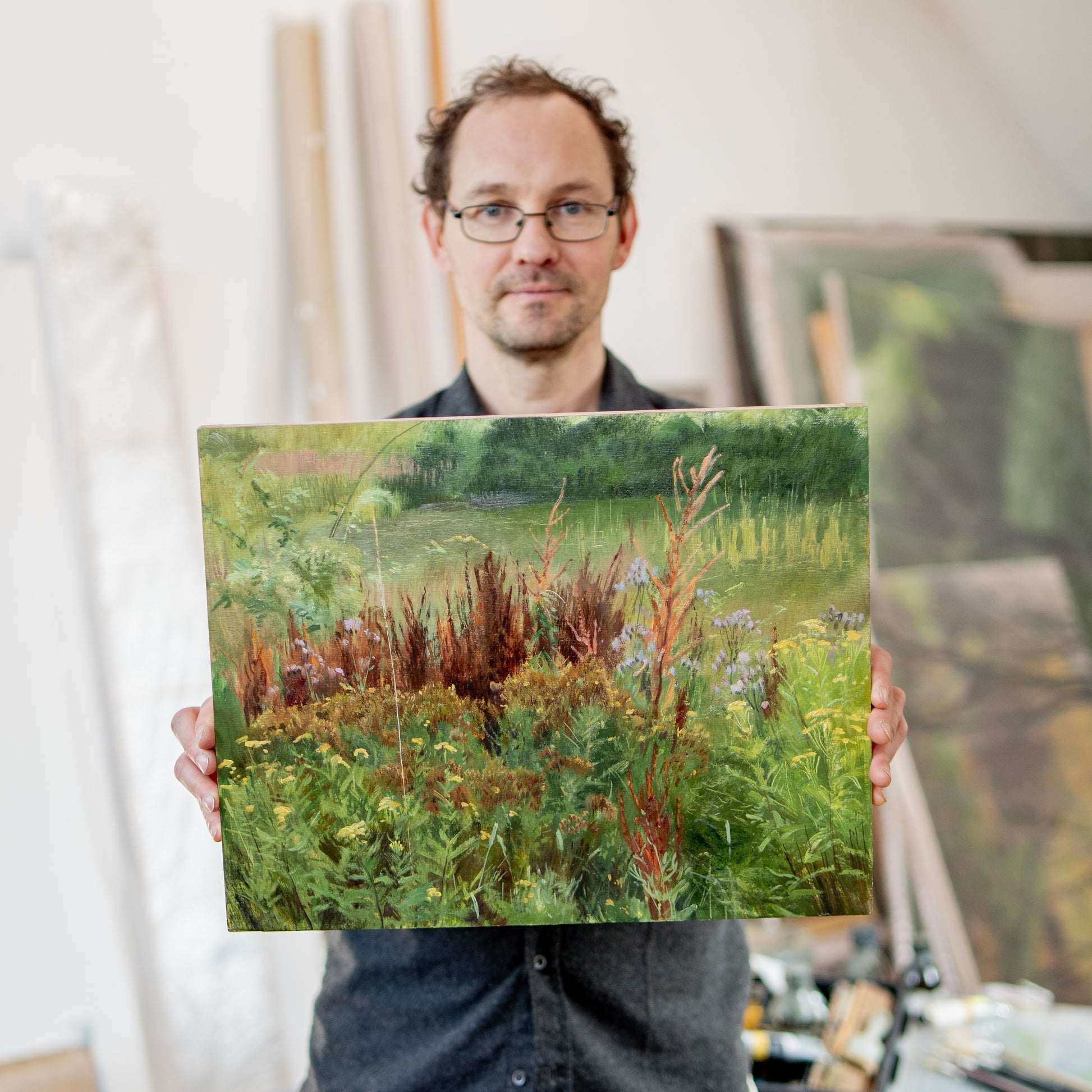 Zdeněk Daněk ve svých plenérových malbách zachycuje krajinu s citlivostí k detailu, světlu i proměnám prostředí. Tahle scéna z bažinky u Sutnarky spojuje přesné pozorování s klidnou, soustředěnou atmosférou, která je pro jeho tvorbu typická.